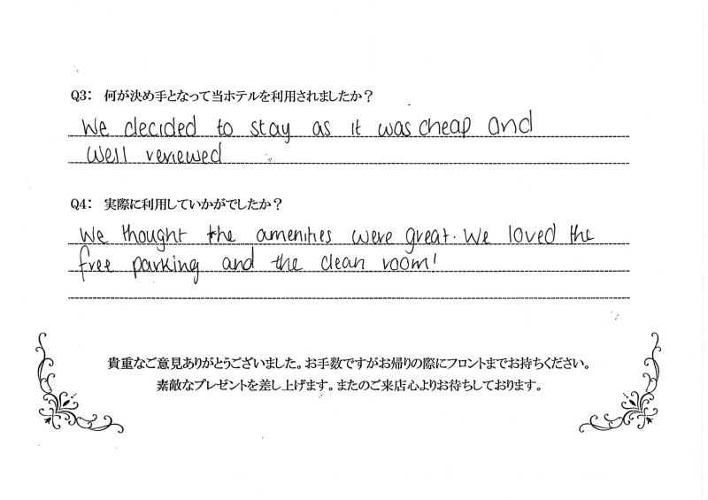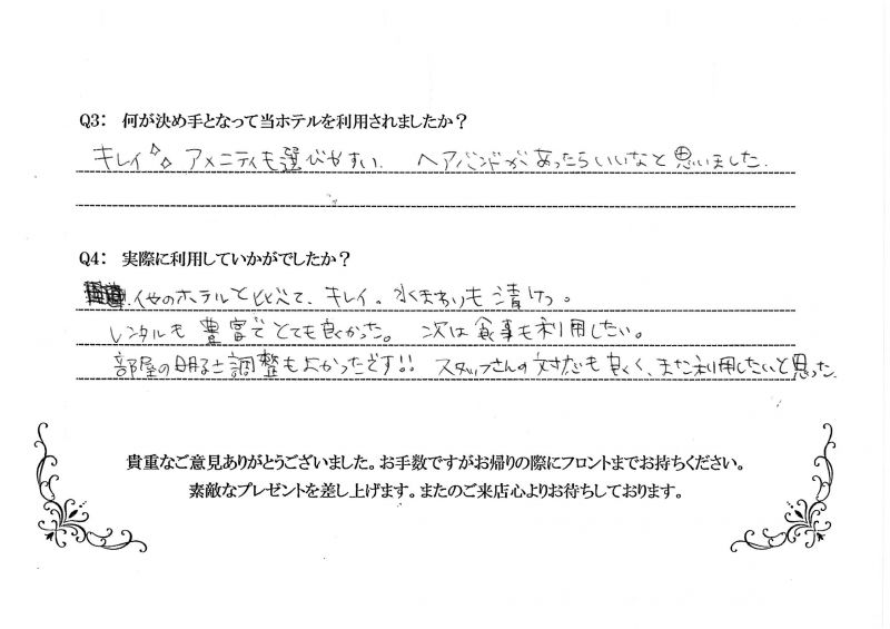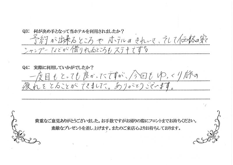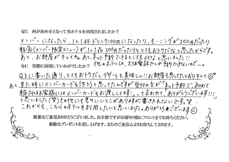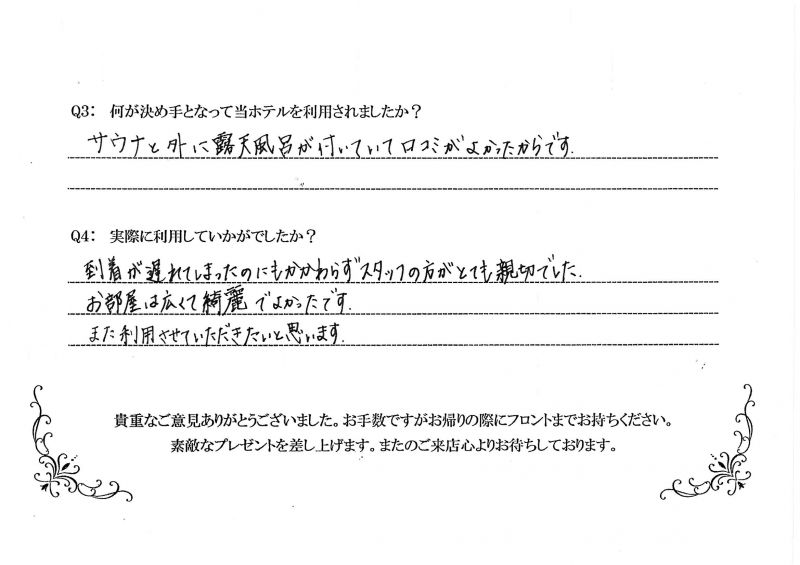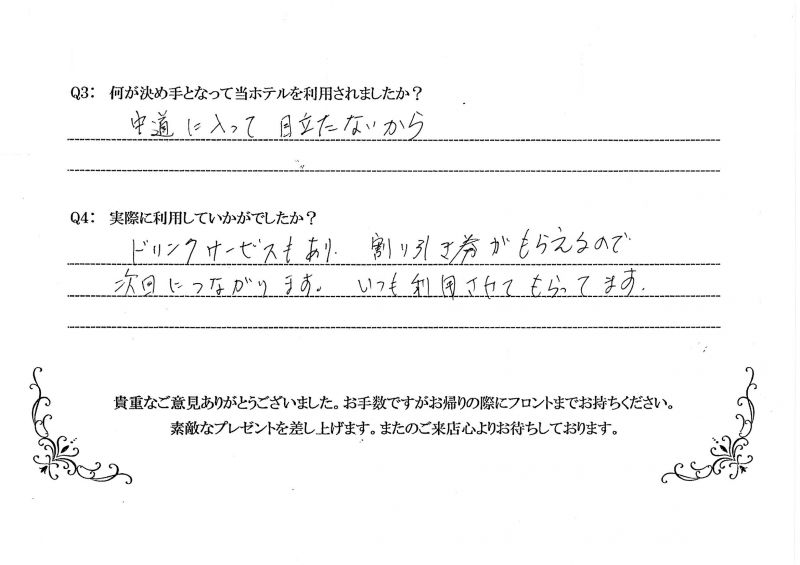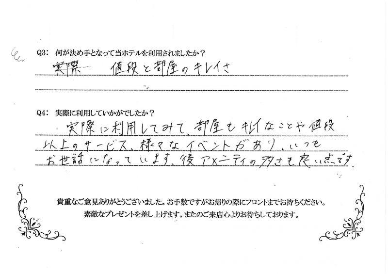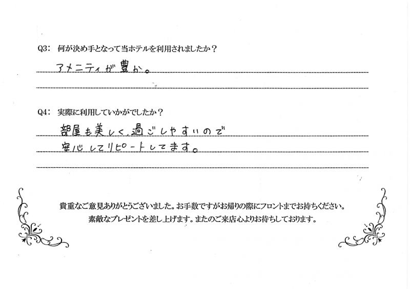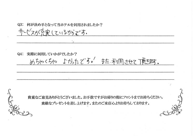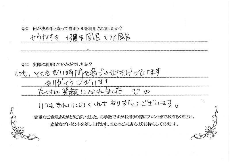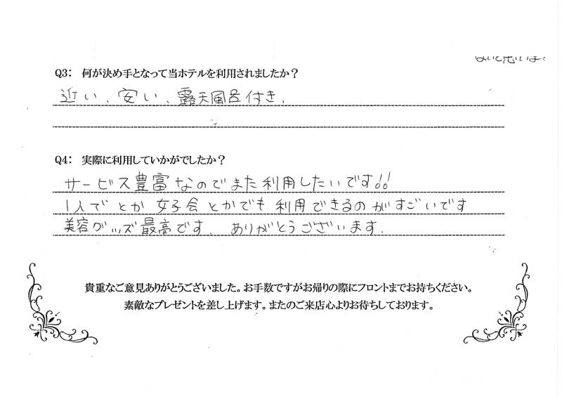 お客様の声-素敵なひと時をお過ごし頂ける、姫路のラブホテル・レジャーホテルです