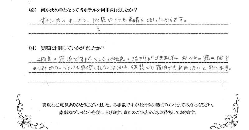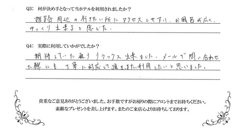 お客様の声-素敵なひと時をお過ごし頂ける、姫路のラブホテル・レジャーホテルです