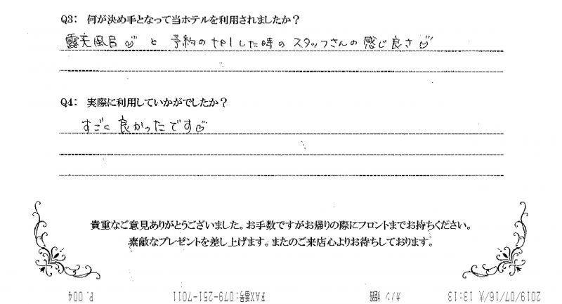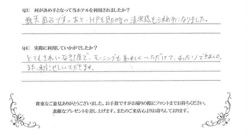 お客様の声-素敵なひと時をお過ごし頂ける、姫路のラブホテル・レジャーホテルです