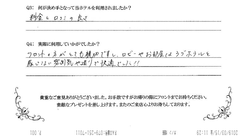 お客様の声-素敵なひと時をお過ごし頂ける、姫路のラブホテル・レジャーホテルです