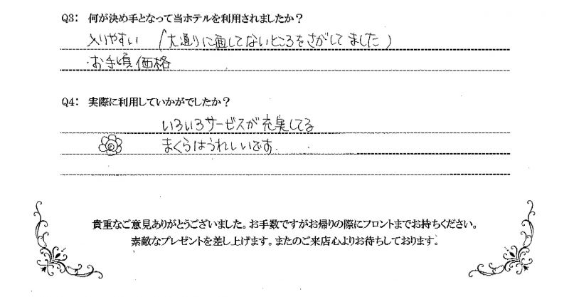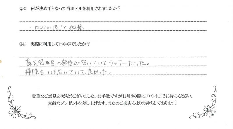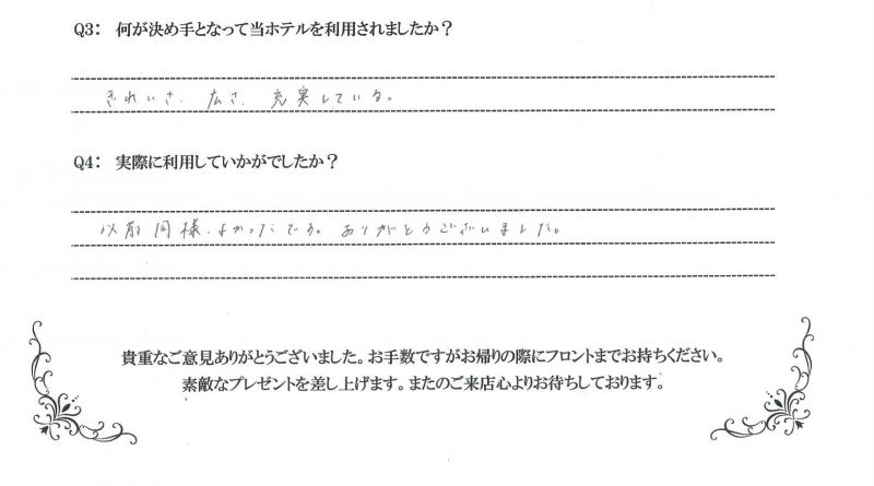 お客様の声-素敵なひと時をお過ごし頂ける、姫路のラブホテル・レジャーホテルです