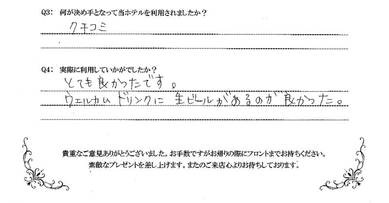 お客様の声-素敵なひと時をお過ごし頂ける、姫路のラブホテル・レジャーホテルです