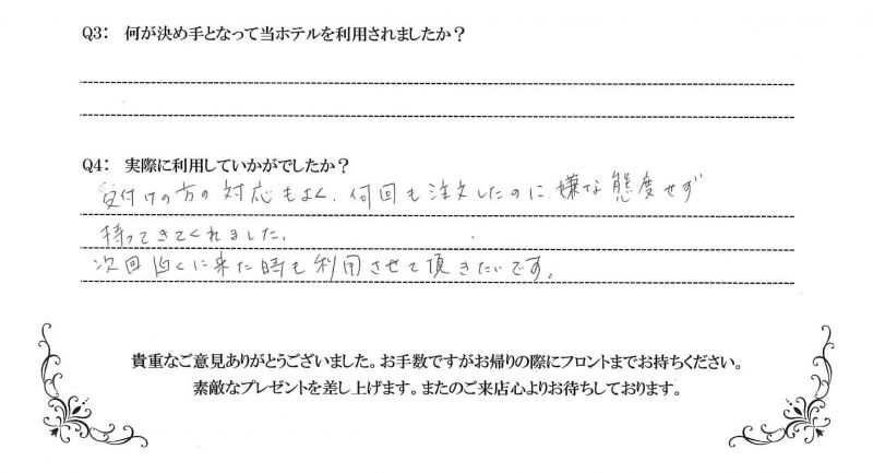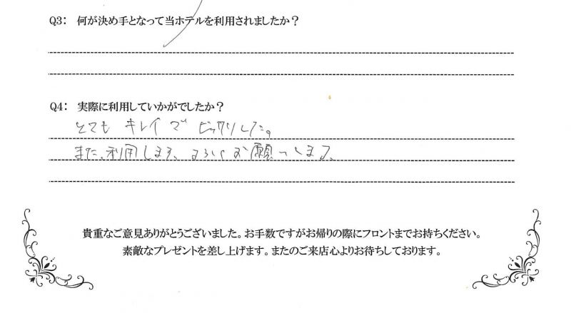 お客様の声-素敵なひと時をお過ごし頂ける、姫路のラブホテル・レジャーホテルです
