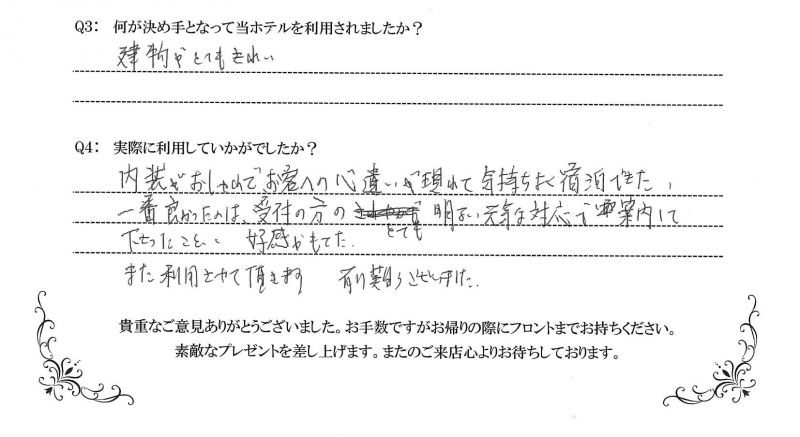 お客様の声-素敵なひと時をお過ごし頂ける、姫路のラブホテル・レジャーホテルです