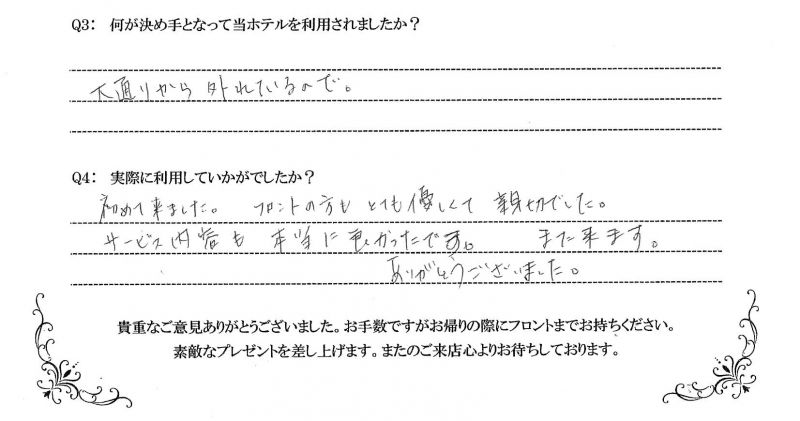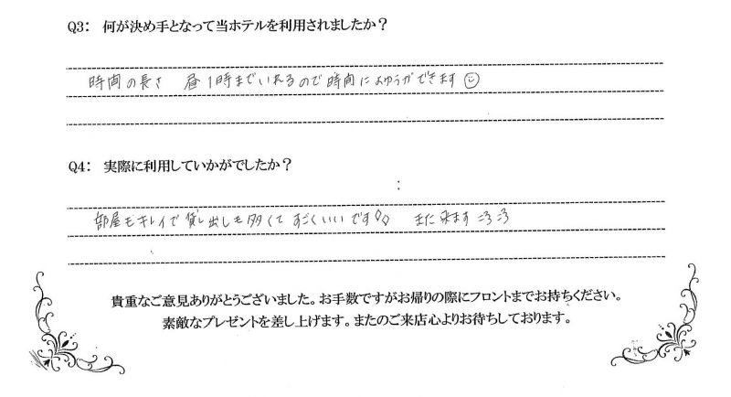 お客様の声-素敵なひと時をお過ごし頂ける、姫路のラブホテル・レジャーホテルです