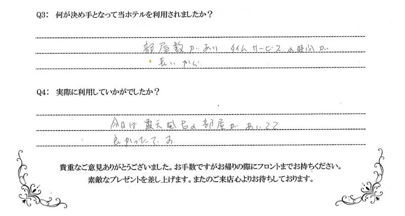 お客様の声-素敵なひと時をお過ごし頂ける、姫路のラブホテル・レジャーホテルです