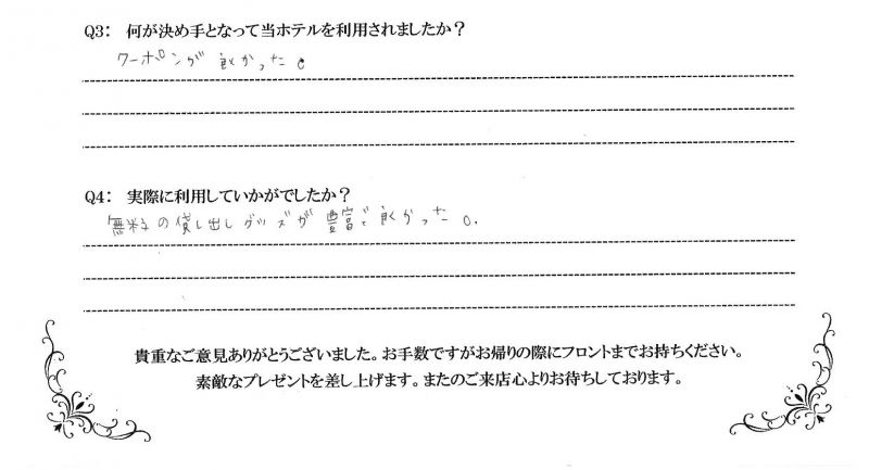 お客様の声-素敵なひと時をお過ごし頂ける、姫路のラブホテル・レジャーホテルです
