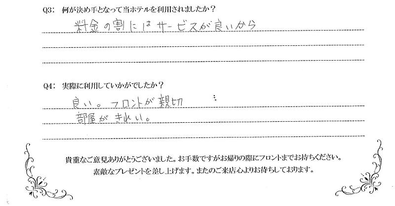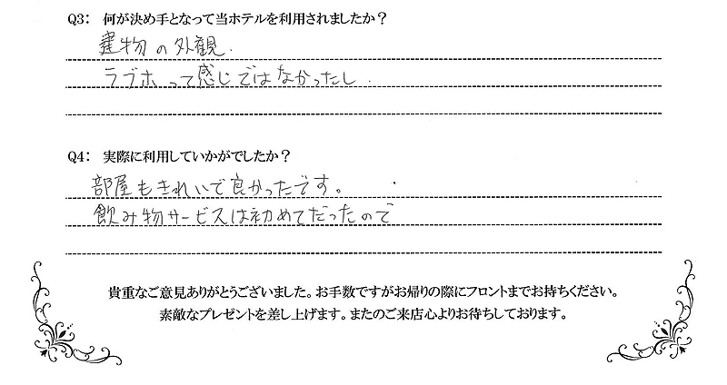 お客様の声-素敵なひと時をお過ごし頂ける、姫路のラブホテル・レジャーホテルです