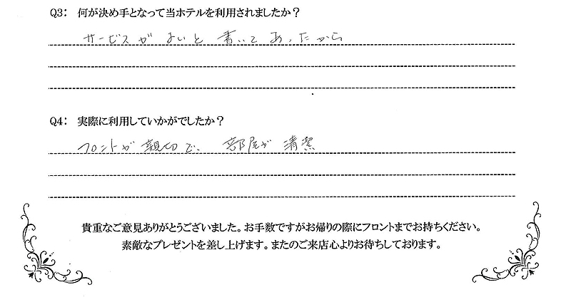 お客様の声-素敵なひと時をお過ごし頂ける、姫路のラブホテル・レジャーホテルです